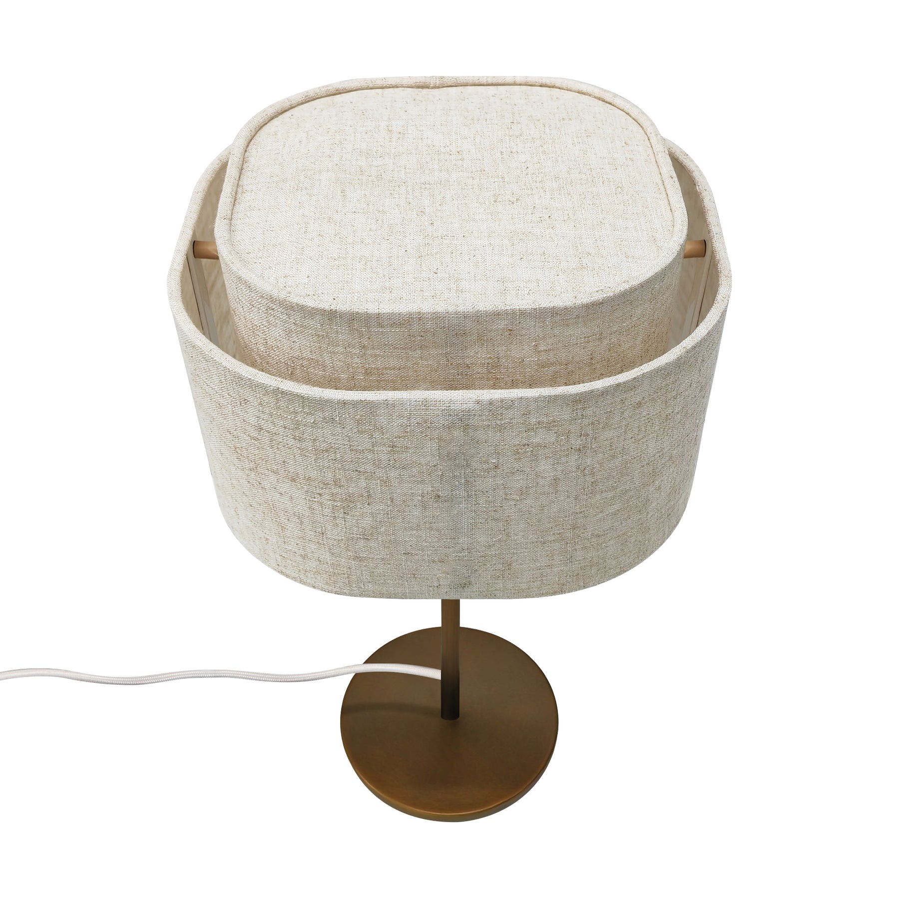 The Takai table lamp by Studio Mavro//Lefèvre by Sofie Lefèvre has a fabric shade with a beautiful shape that invites you to view it from various angles. The combination of the linen shade and the burnished brass base creates a soft, warm design expression.