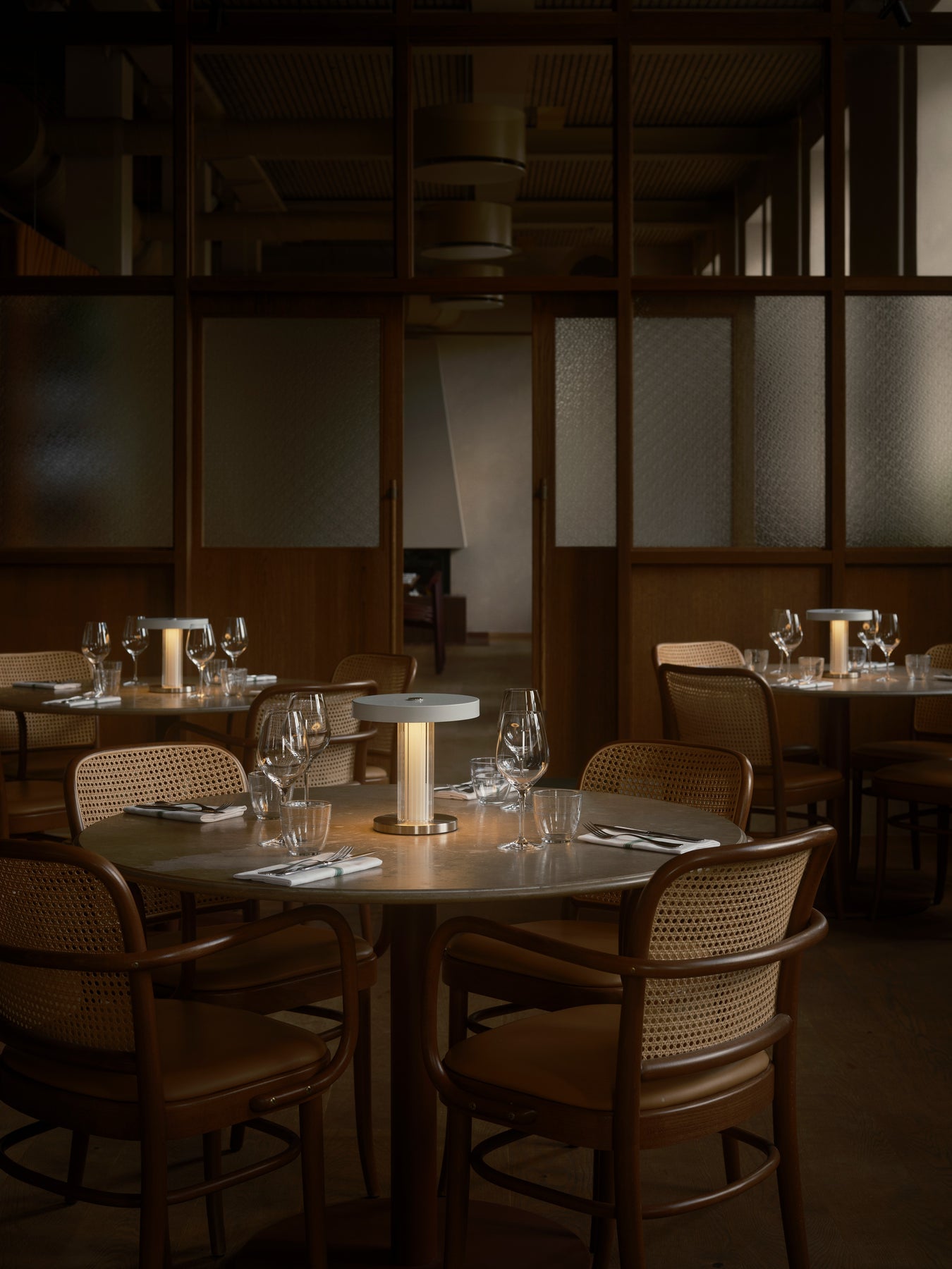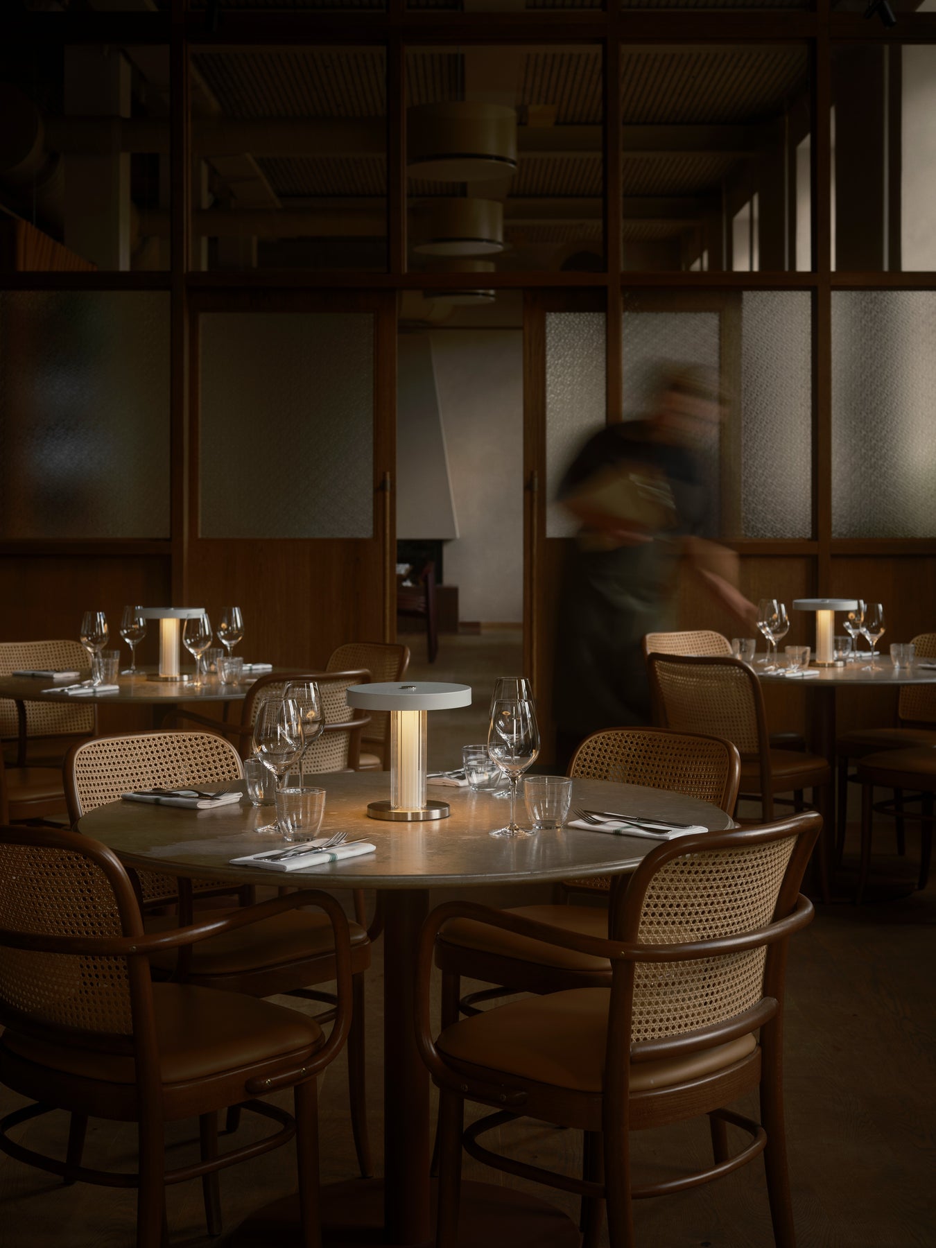 Trezzi, an elegant, portable table lamp was designed by Danish design duo Anker Studio. Trezzi has a modern and elegant design with fluted glass that draws inspiration from Art Deco style. Dim the light in three steps using the touch button to create the perfect ambience. The lamp is easily charged with the included USB cable.