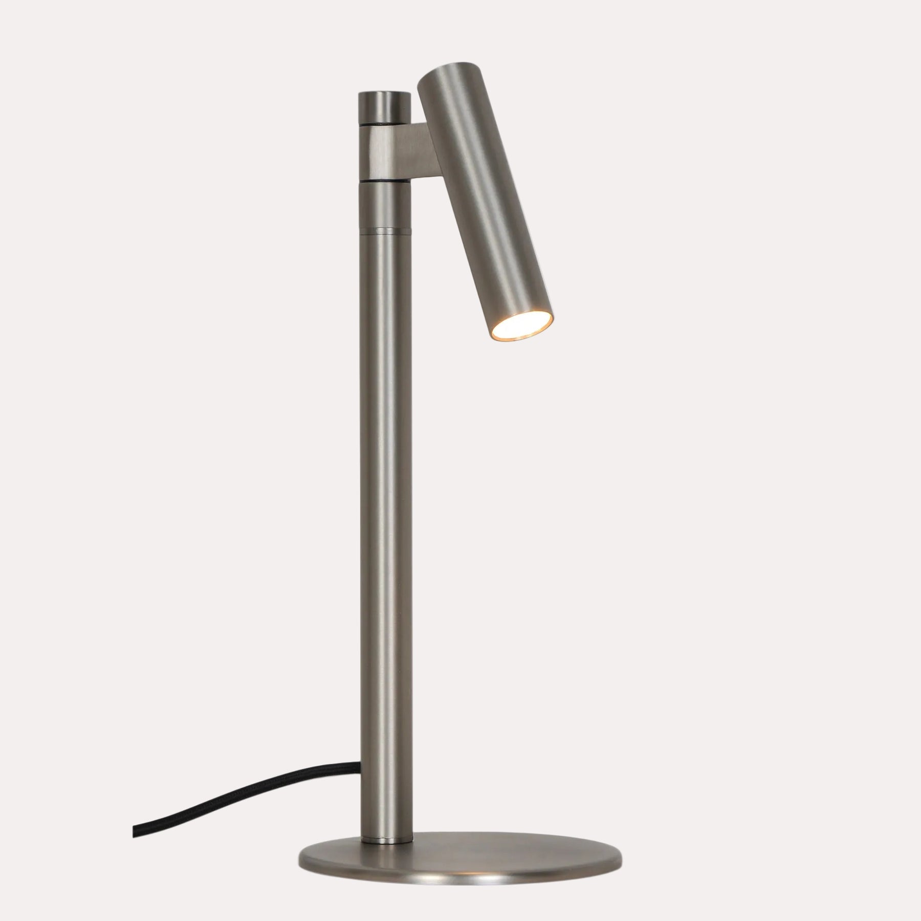 Makoto is a sleek and minimalist table lamp designed by Danish Nital Studio. The minimalist, vertical silhouette is finished in satin chrome – a warm, brushed chrome finish that adds a subtle softness to the industrial look. The adjustable lamp head provides flexible and directional light, making Makoto ideal for reading and working.